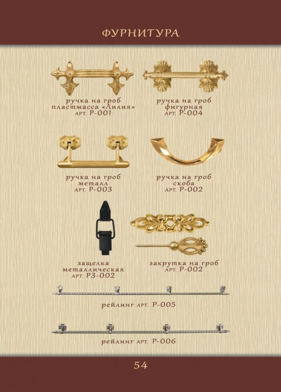 Фурнитура — ручки, уголки, декоративные элементы для гроба.