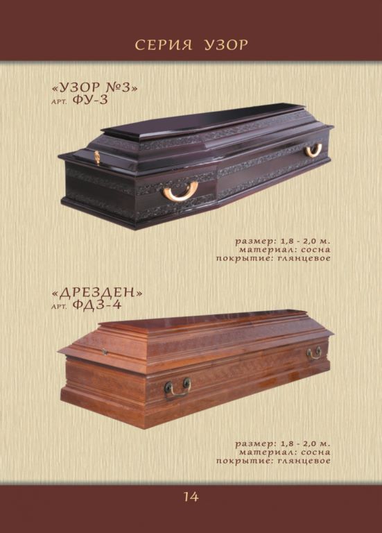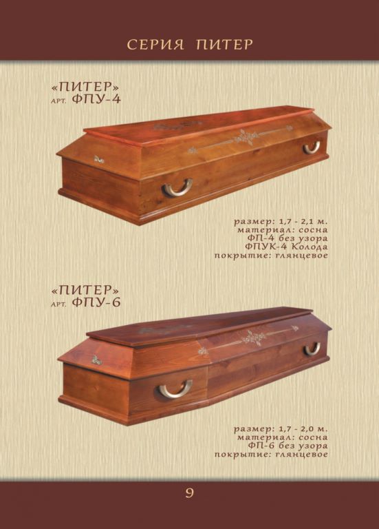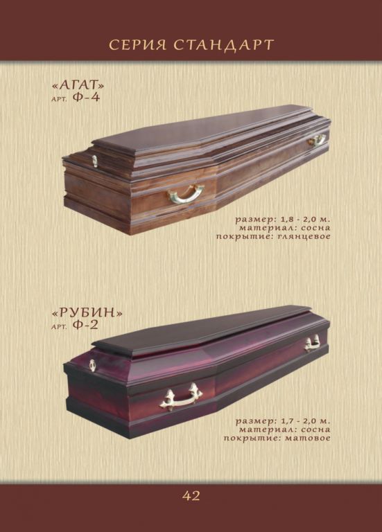 Характеристики гроба зависят от ваших предпочтений, бюджета и формата прощальной церемонии. Например, если планируется кремация, гроб должен быть выполнен исключительно из горючих материалов — без металлических элементов, лака и пластика.