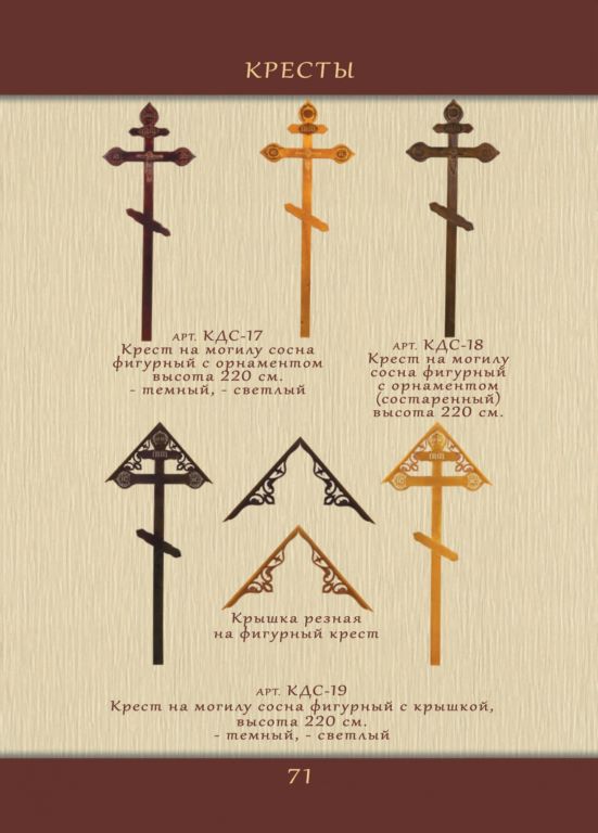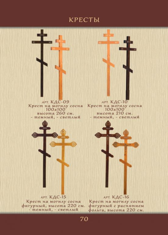 Похоронный крест — важный символ православной традиции, устанавливаемый на могиле в день захоронения. В нашем магазине представлены кресты из дерева (сосна, дуб, лиственница) и металла (кованые, литые), с различными вариантами отделки.